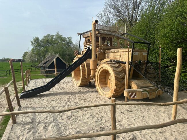 Heb jij onze nieuwe speeltuin al gezien? Je kunt erop klimmen, rijden en er zit zelfs een knop op om rook uit de uitlaatpijp te laten komen.